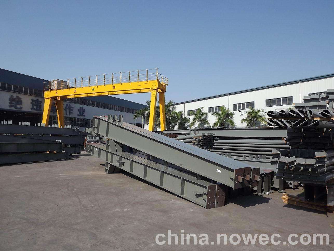 条状单元一般沿长跨方向分割,其宽度约为1~3个网格,其长度为l2或l2/2(l2为短跨跨距)。块状单元一般沿泰安网架平面纵横向分割成矩形或正方形单元。每个单元的重量以现有起重机能胜任为准。条(块)与条(块)之间可以直接拼装,也可空一网格在高空拼装。由于条(块)状单元是在地面拼装,因而高空作业量较高空散装法大为减少,拼装支架也减少很多,又能充分利用现有起重设备,故较经济。这种安装方法适用于分割后网架的钢度和受力状况改变较小的各类中小型网架,如两向正交正放四角锥、正放抽空四角锥等网架。